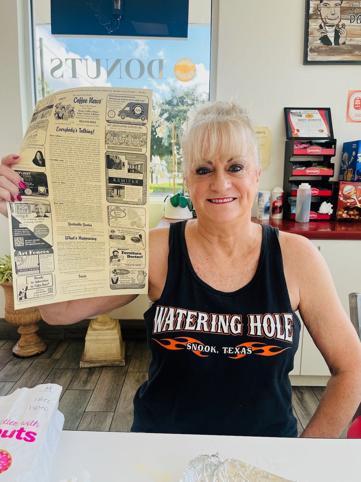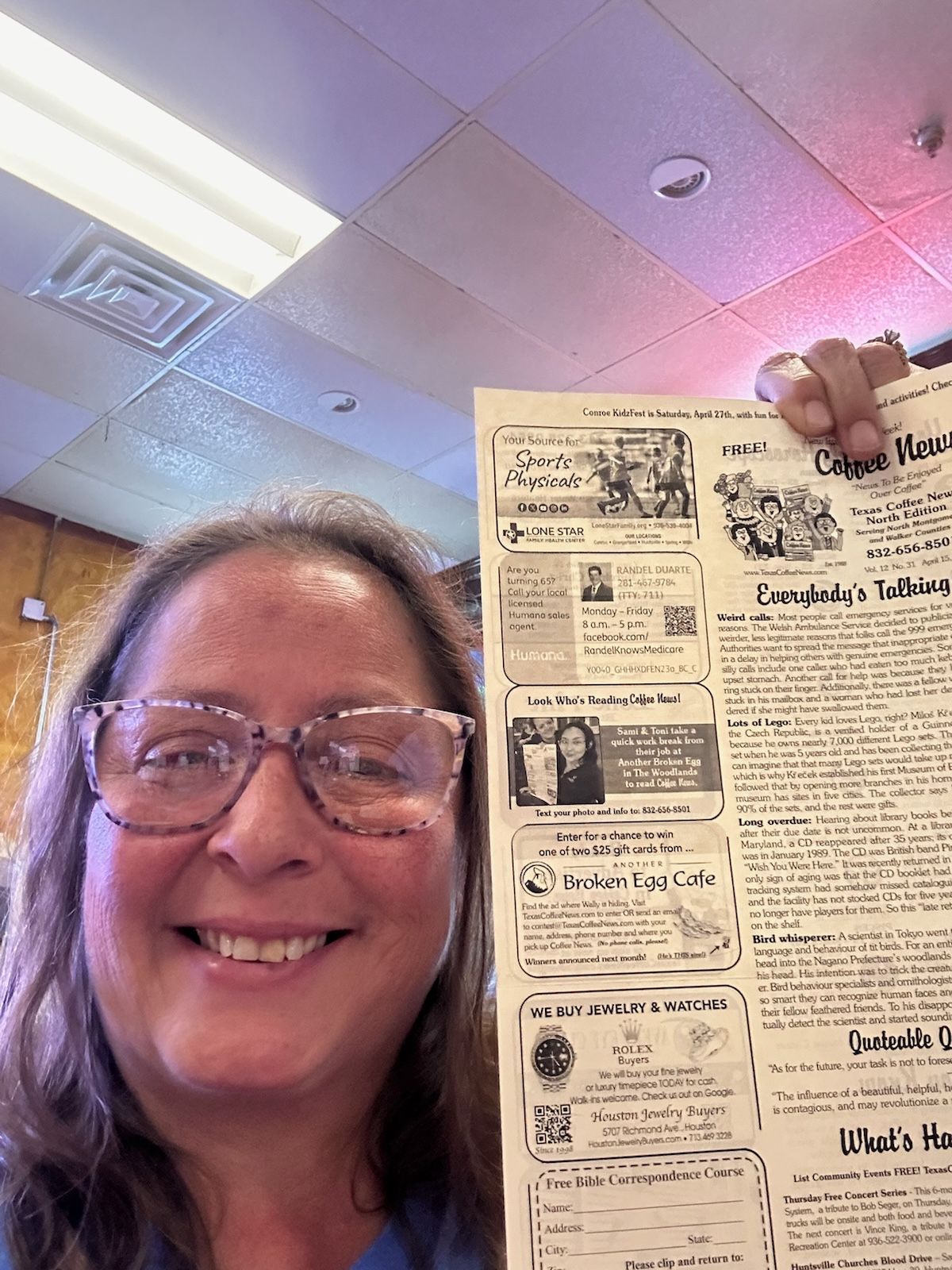 She loves reading Texas Coffee News at Denny's in Magnolia!