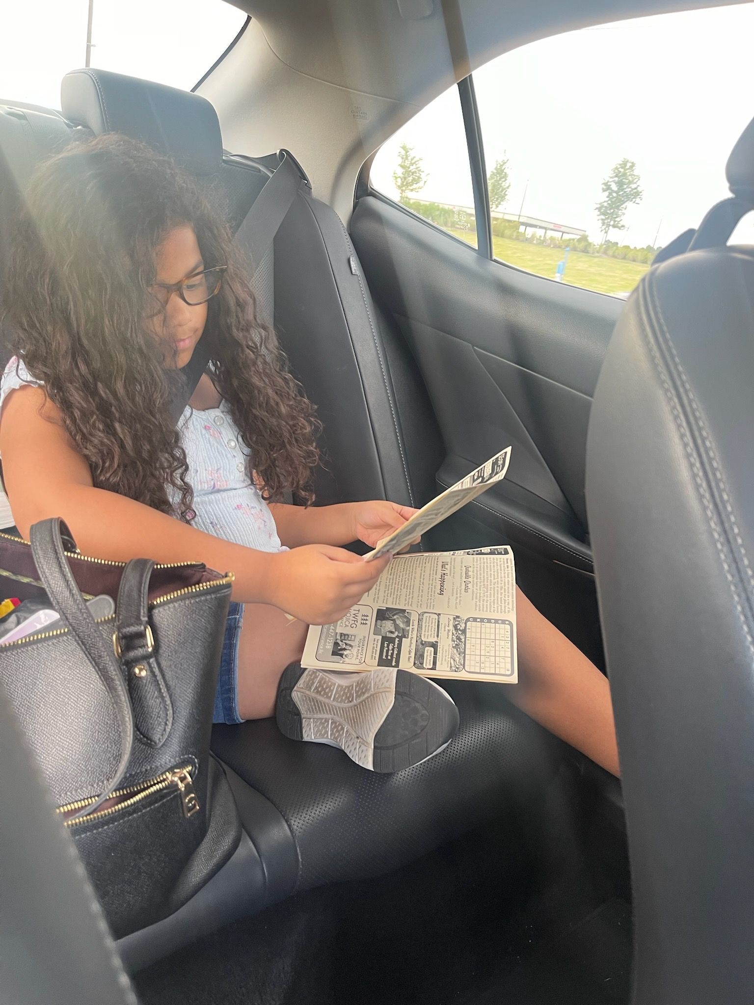 Tia reads Coffee News at Roasted in Woodforest!