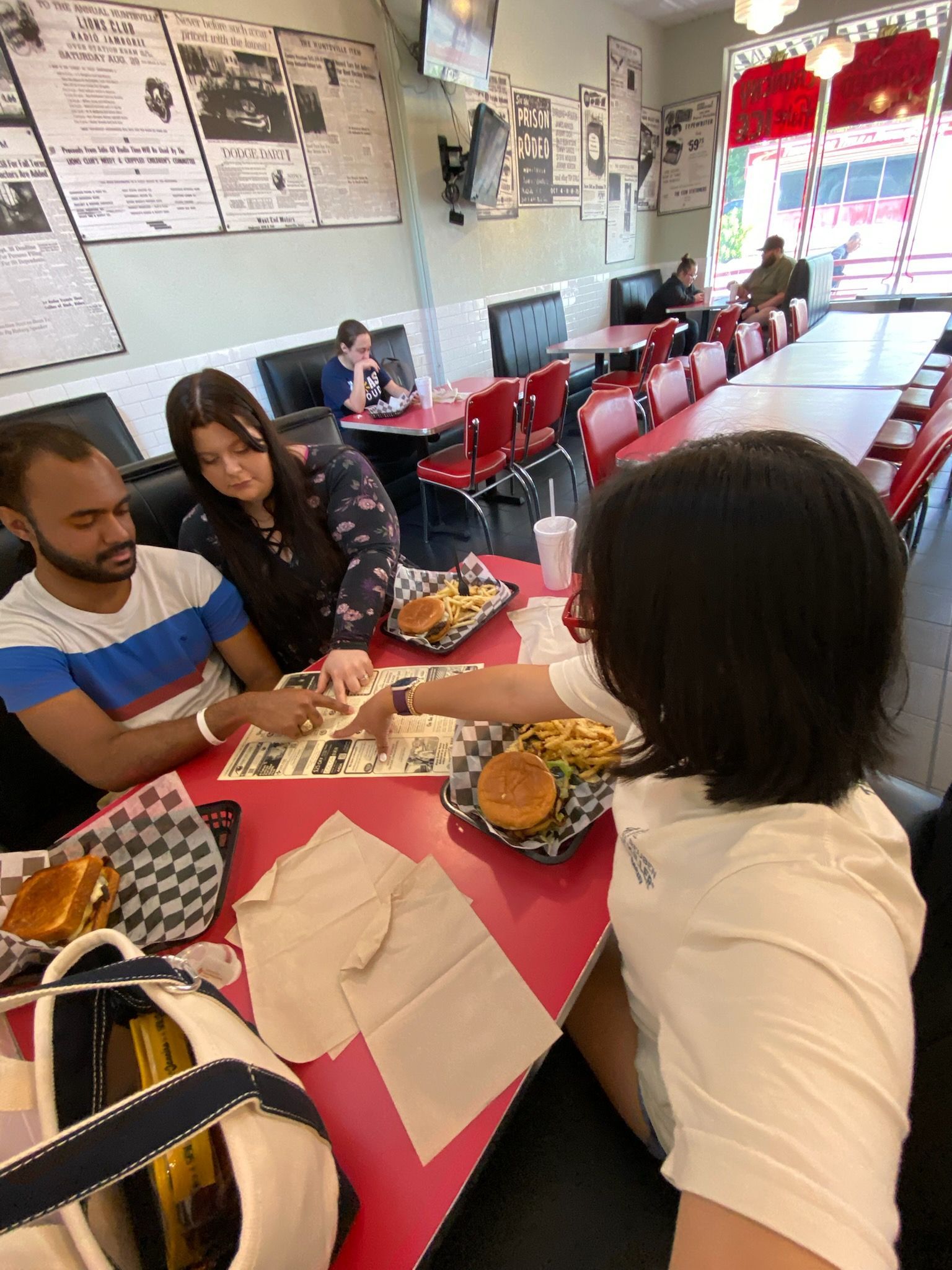 Reading Coffee News at Mr. Hamburger in Huntsville